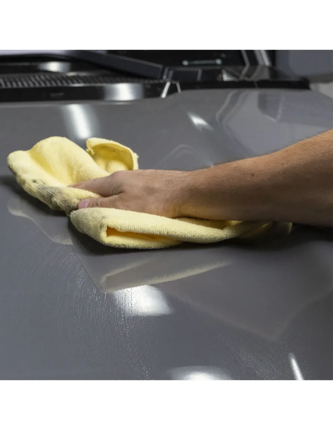 - Szybko rozprowadź produkt za pomocą ręcznika z mikrofibry, takiego jak Meguiar’s® Supreme Shine™ Microfiber Towel.