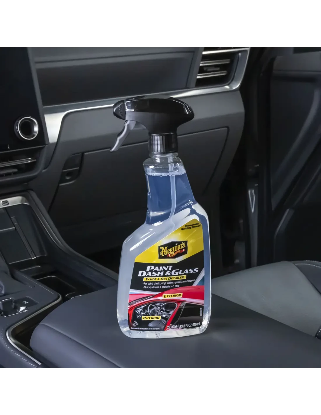 Kiedy stosować Meguiar’s Paint, Dash & Glass Inside & Out Detailer? W rzeczywistości pytanie powinno brzmieć: kiedy nie należy stosować Meguiar’s Paint Dash & Glass?! Ten rewolucyjny preparat zapewnia szybkie i łatwe czyszczenie z hydrofobową ochroną na powierzchniach zewnętrznych i wewnętrznych. Łatwo usuwa kurz, brud drogowy, odciski palców i ptasie odchody z lakieru, elementów z tworzywa i szyb. Poza skutecznym czyszczeniem i ochroną, zapewnia efekt bez smug na zewnętrznych szybach i pozostawia nietłustą powłokę zabezpieczająca. Ten wszechstronny detailer doskonale nadaje się do poprawek, po ręcznym myciu, wizycie w myjni tunelowej oraz do bieżącej konserwacji czystego pojazdu lub czyszczenia punktowego w razie potrzeby.