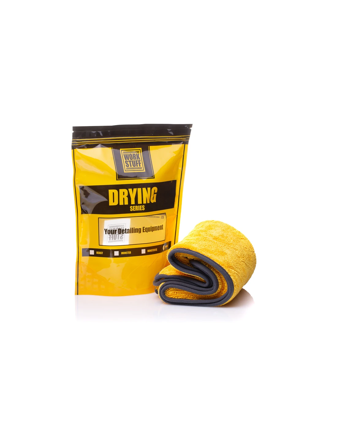 Nowoczesny rodzaj ręcznika do osuszania o unikalnym rodzaju koreańskiej fibry "Twisted Pile". Charakteryzuje się bardzo dużą chłonnością oraz szybkoschnącym włóknem. Gęsta i delikatna struktura mikrofibry nie pozostawia zarysowań i jest bezpieczna dla każdego rodzaju lakieru. Idealny do osuszania średnich i dużych samochodów. Wysokiej klasy włókno umożliwia pracę bez ryzyka powstawania smug na lakierze samochodu. Ręcznik posiada laserowo wycięty logotyp WORK STUFF oraz materiałowe obszycie na krawędziach.