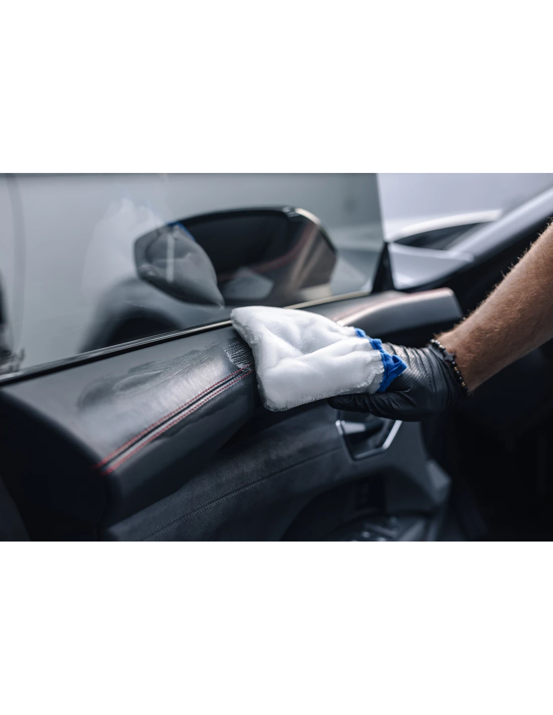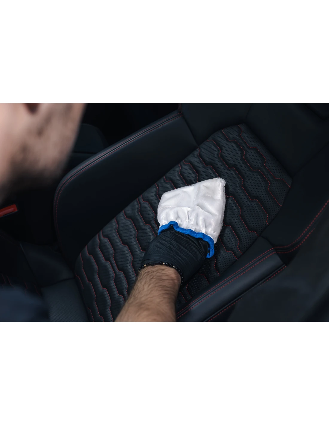 Interior Scrub Mitt to rękawica przeznaczona do czyszczenia powierzchni skórzanych, tekstylnych i plastikowych. Zawartość innowacyjnych włókien z mikrofibry moquette pozwala na “szorowanie” powierzchni bez jej zarysowywania. Rękawica posiada elastyczną gumkę, która zapewnia wygodne dopasowanie i pewny chwyt podczas mycia.