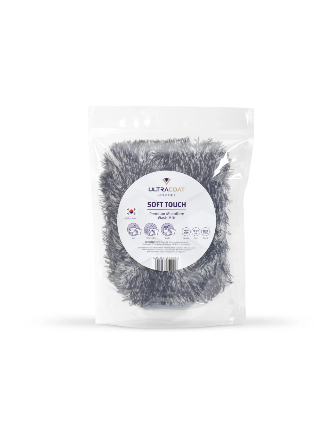 Soft Touch to komfortowa i wytrzymała rękawica do mycia pojazdów wykonana z najwyższej jakości koreańskiej mikrofibry. Delikatna struktura włosia gwarantuje wysokie bezpieczeństwo mytej powierzchni oraz łatwe wypłukiwanie zabrudzeń z rękawicy. Wewnątrz Soft Touch znajduje się dwustronna gąbka, która doskonale chłonie wodę z szamponem, zapewniając wysoki poślizg podczas mycia i ułatwiając pracę.