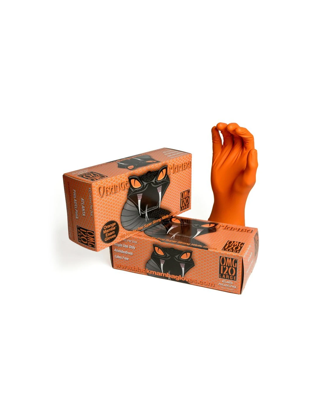 Wyprodukowane z unikalnej mieszanki nitrylu, rękawice ochronne Orange Mamba zaprojektowano tak by były najmocniejsze spośród dostępnych na rynku. Łączą trwałość i wytrzymałość docenionych rękawic Black Mamba z podwyższoną widocznością pomarańczowego koloru. Grubsze i mocniejsze niż jakiekolwiek inne rękawice nitrylowe. Rękawice Orange Mamba charakteryzuje grubość ponad 0,6 mil . Trzykrotnie bardziej odporne na przebicie i przetarcia niż rękawiczki z lateksu bądź winylu.