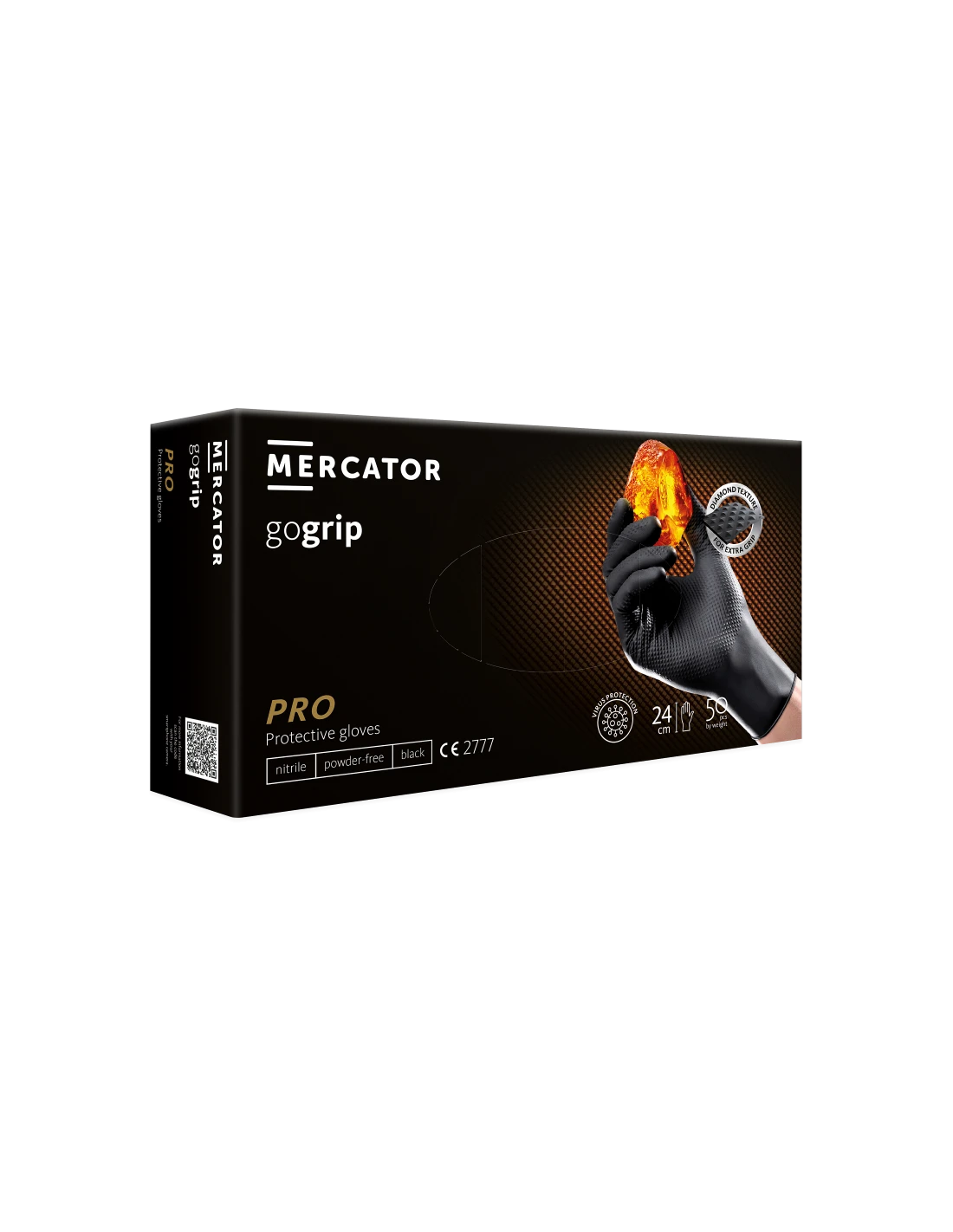 Wyjątkowo elastyczne MERCATOR Gogrip są 2 razy grubsze od standardowych rękawiczek dostępnych na rynku. Te wykonane z trwałego nitrylu rękawice, cechują się unikalną diamentową teksturą 3D, która sprawia, że Twój chwyt jest mocny i stabilny a równocześnie nie ogranicza Twojej precyzji. Oryginalna struktura MERCATOR Gogrip sprawi, że możesz obsługiwać urządzenia mobilne bez zdejmowania rękawiczek. Dodatkowo zrewolucjonizowana diamentowa tekstura 3D zapobiega potliwości dłoni w trakcie użytkowania, co podwyższa komfort pracy, minimalizując ryzyko uszkodzeń skóry dłoni.