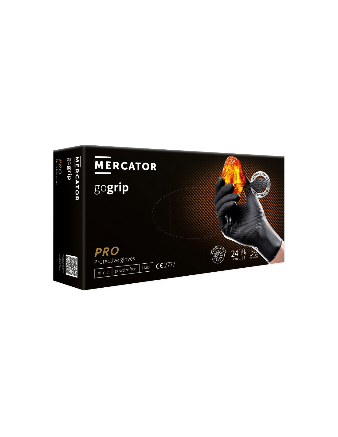 Wyjątkowo elastyczne MERCATOR Gogrip są 2 razy grubsze od standardowych rękawiczek dostępnych na rynku. Te wykonane z trwałego nitrylu rękawice, cechują się unikalną diamentową teksturą 3D, która sprawia, że Twój chwyt jest mocny i stabilny a równocześnie nie ogranicza Twojej precyzji. Oryginalna struktura MERCATOR Gogrip sprawi, że możesz obsługiwać urządzenia mobilne bez zdejmowania rękawiczek. Dodatkowo zrewolucjonizowana diamentowa tekstura 3D zapobiega potliwości dłoni w trakcie użytkowania, co podwyższa komfort pracy, minimalizując ryzyko uszkodzeń skóry dłoni.