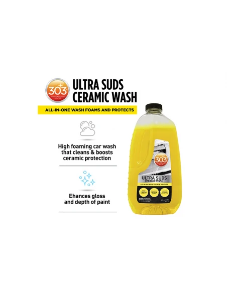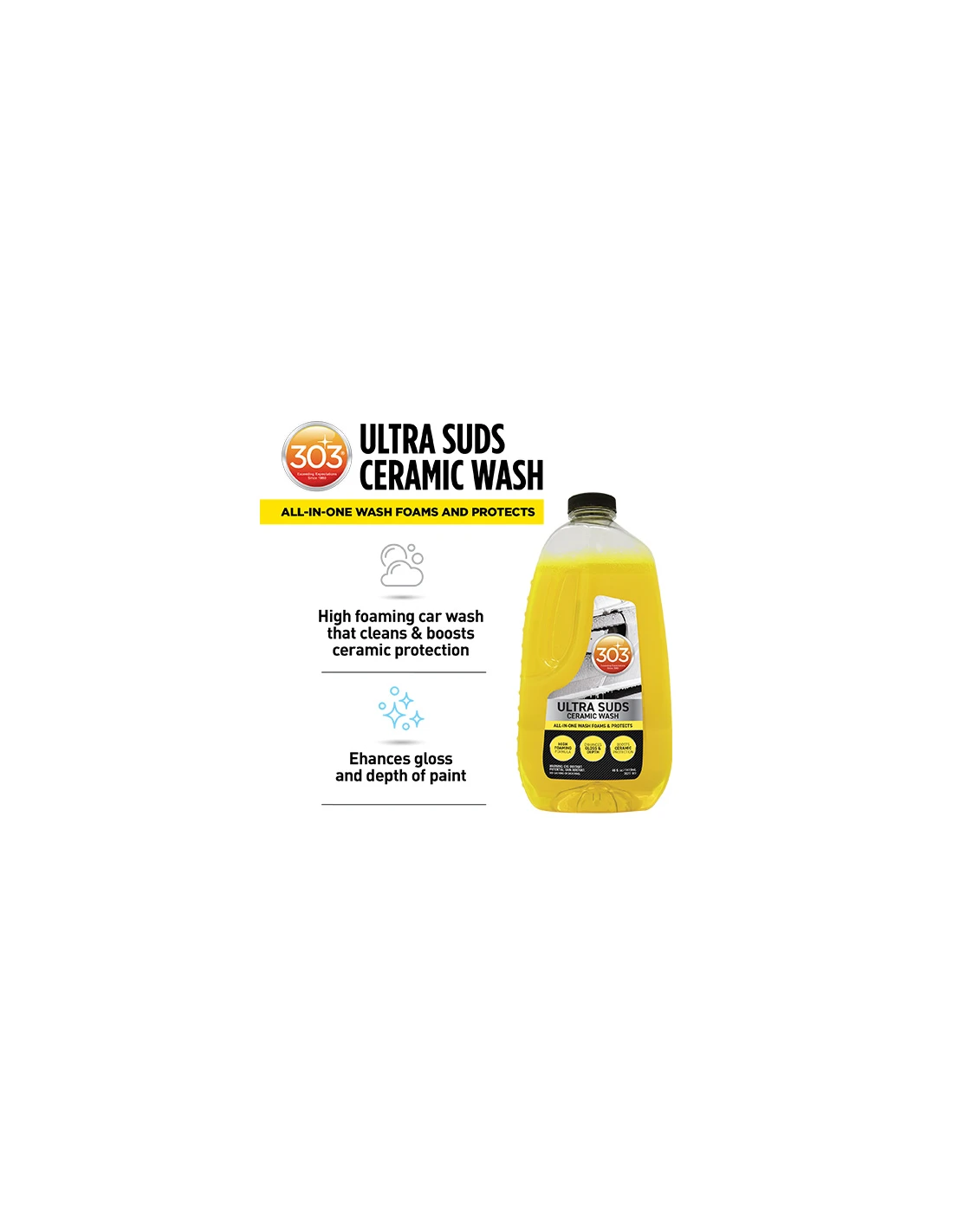 Ulepsz rutynę mycia samochodu dzięki 303 Ultra Suds Ceramic Wash. Najlepszy wybór dla tych, którzy szukają połączenia niezrównanej ochrony, oszałamiającego połysku i wygody jednego produktu, który robi wszystko. Kompleksowe rozwiązanie, dzięki któremu Twój samochód będzie wyglądał jak nowy i chroniony przez długi czas!