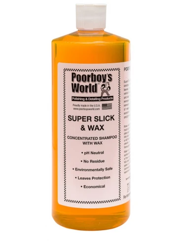 Jeśli Poorboy’s Super Slick & Suds spełnił Twoje oczekiwania w 100% i zastanawiałeś się czy jakikolwiek inny szampon może dostarczyć tak obfitej piany i niepowtarzalnego poślizgu mamy dla Ciebie coś specjalnego. POORBOY’S Super Slick & Wax w limitowanej edycji to podrasowana wersja bestsellerowego szamponu Poorboy’s zawierająca dodatek naturalnego wosku. W odróżnieniu od agresywnych środków czyszczących, Poorboy’s Super Slick & Waxnie tylko nie zmywa wosków którymi z dbałością pielęgnujesz lakier, lecz wręcz wzbogaca je przedłużając trwałość zabezpieczenia. Produkt idealny dla tych entuzjastów którzy chcą wykorzystać każdą sposobność do wyciągnięcia maximum z prezencji wozu.