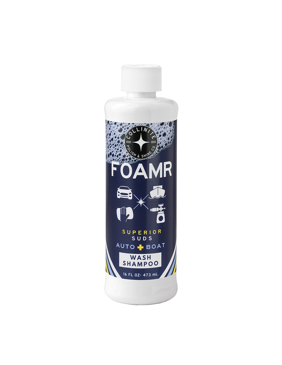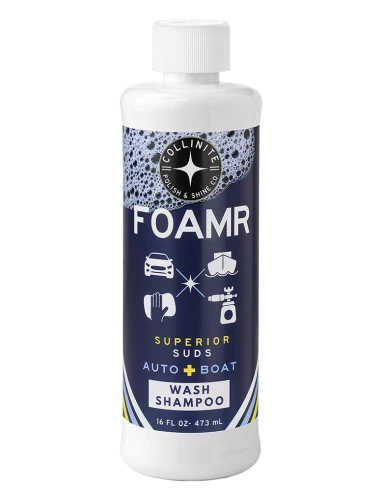 Nowy Foamr marki Collinite to wysoce skoncentrowany i wszechstronny szampon o neutralnym pH, który tworzy trwałą pianę i zapewnia wyjątkowo głęboki połysk. Ta silnie pieniąca się, dająca idealny poślizg formuła bezpiecznie usuwa brud i osady z lakieru, włókna szklanego, zapewniając jednocześnie gładkie wykończenie. Szampon ten przeznaczony jest również do konserwacji wosku, sealantu lub powłoki ceramicznej. Do stosowania na wszystkich powierzchniach zewnętrznych, w tym na lakierze, lakierze bezbarwnym, chromie, foliach PPF, powierzchniach matowych, żelkocie, plastiku i szkle. Przeznaczony zarówno do mycia ręcznego jak i za pomocą pianownicy.