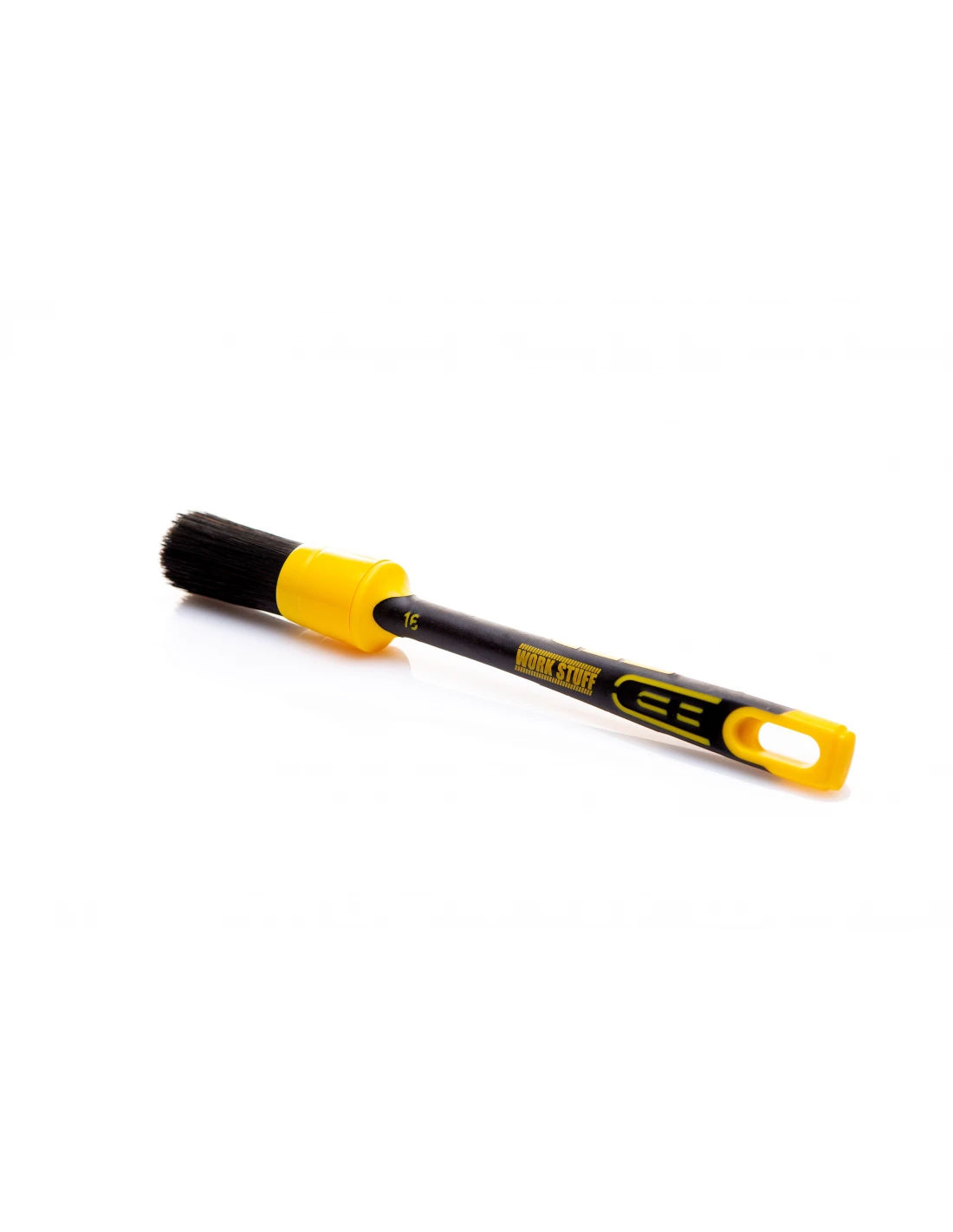 Pędzelek o dużej sile czyszczenia. Świetnie sprawdza się podczas czyszczenia felg, progów, wnęk oraz komór silnika. Z powodzeniem może być wykorzystany przy pracach wewnątrz samochodu w przypadku ciężkich zabrudzeń, ponieważ znakomicie wybiera ciężki brud. Trzonek pędzelka został wykonany z gumowego tworzywa. Włosie stworzone z syntetycznego materiału. Gumowy trzonek lepiej sprawdza się podczas czyszczenia wnęk, ponieważ zmniejsza ryzyko obicia lakieru. Nie powinien być używany do czyszczenia podatnych na zarysownia elementów takich jak karoseria, elementy piano, felgi piano oraz czarny połysk.