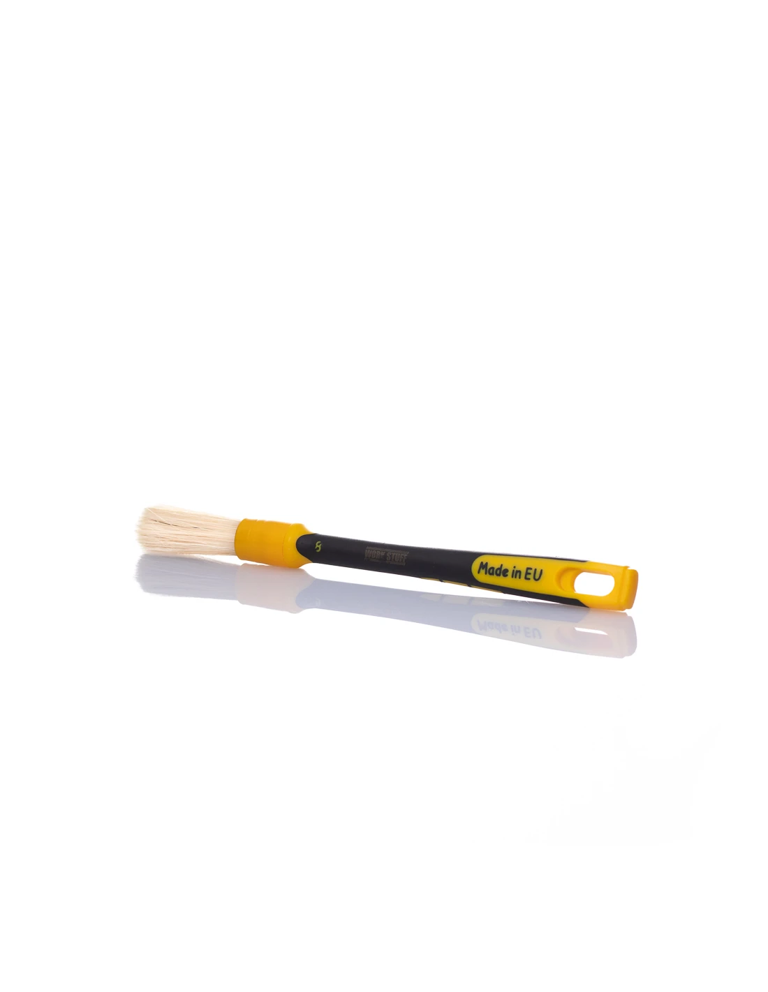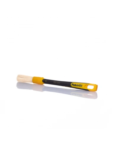 Najbardziej uniwersalny pędzelek w ofercie. Świetnie sprawdza się podczas czyszczenia felg oraz w trakcie wykonywania prewashu. Z powodzeniem może być wykorzystany przy pracach wewnątrz samochodu. Trzonek pędzelka został wykonany z gumowego tworzywa. Włosie stworzone z połączenia naturalnych oraz syntetycznych materiałów. Gumowy trzonek lepiej sprawdza się podczas czyszczenia wnęk, ponieważ zmniejsza ryzyko obicia lakieru. Pędzelek w dużym stopniu wchłania chemię dzięki czemu możemy rozprowadzić większą ilość produktu na danym elemencie.