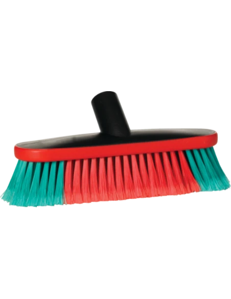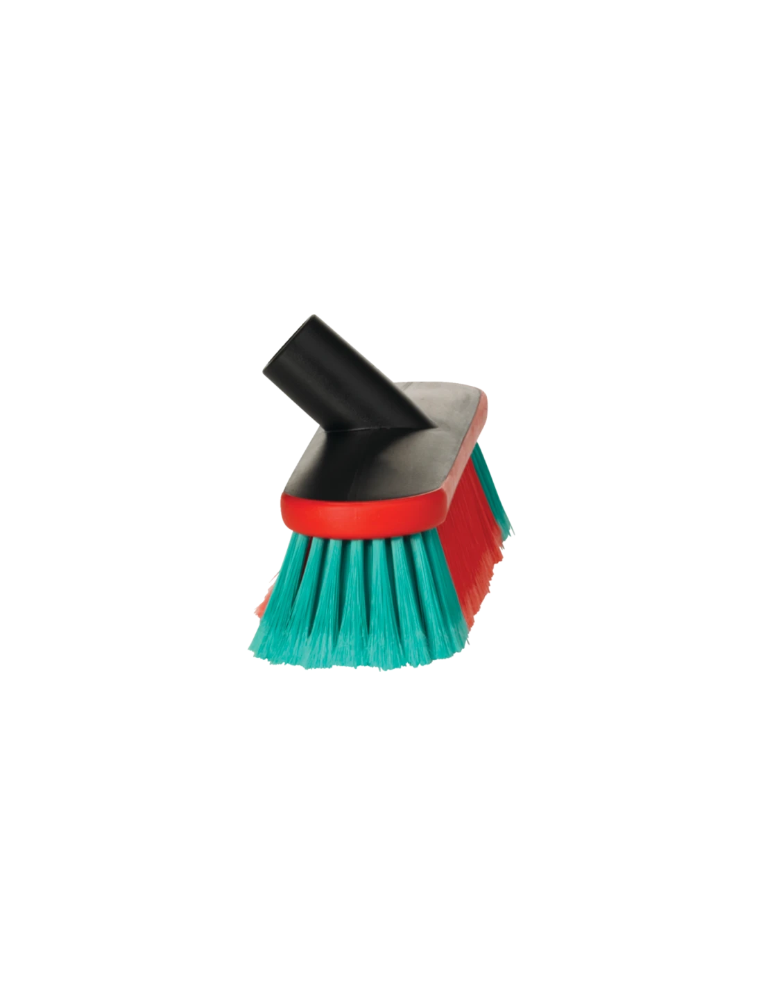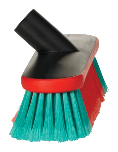 Duża szczotka owalna z przepływem wody. Miękkie wytrzymałe włosie poliestrowe. Używana najczęściej do mycia dużych płaskich powierzchni, samochodów ciężarowych, naczep, chłodni, kontenerów izoterma, autokarów oraz pojazdów komunikacji publicznej. Jest lekka, dzięki czemu nawet wielogodzinne używanie szczotki na myjni jest wygodne i ergonomiczne. Gumowy rant dookoła szczotki poprawia komfort jej używania. Możesz jej bezpiecznie używać nawet przy myciu trudnodostępnych miejsc bez ryzyka obicia lub porysowania mytych powierzchni.
