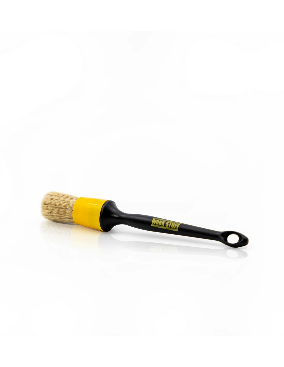 Najbardziej uniwersalny pędzelek w ofercie teraz w nowej wersji z krótszym włosiem które zapewnia lepszą siłę czyszczącą oraz pieniącą. Świetnie sprawdza się podczas czyszczenia felg oraz w trakcie wykonywania prewashu. Z powodzeniem może być wykorzystany przy pracach wewnątrz samochodu. Trzonek pędzelka został wykonany z polakierowanego plastiku. Włosie stworzone z połączenia naturalnych oraz syntetycznych materiałów. Pędzelek w dużym stopniu wchłania chemię dzięki czemu możemy rozprowadzić większą ilość produktu na danym elemencie.