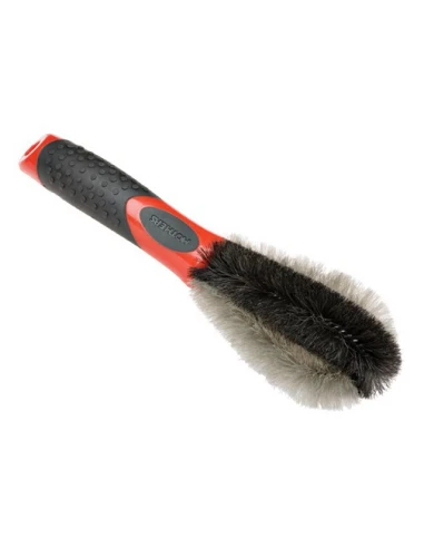 Mycie delikatnej powierzchni felg może być ryzykowne jeśli nie używasz w tym celu odpowiedniej szczotki. Mothers Brake Dust Brush to szczotka dedykowana do usuwania opornych zabrudzeń z felg, włączając w to pył z klocków hamulcowych, bez ryzyka zarysowania powierzchni. Za pomocą miękkiego, polipropylenowego, odpornego na chemikalia włosia i odpowiedniego detergentu do mycia skutecznie zluzujesz przywierający brud. Smukła, okrągła główka z łatwością dostanie się wszędzie gdzie trzeba. Rozmiar główki możesz z łatwością dostosować do potrzeb poprzez rozwarcie metalowej konstrukcji podtrzymującej włosie. Ta ergonomiczna w kształcie szczotka z gumowym, antypoślizgowym uchwytem sprawia, że mycie felg staje się komfortowe i łatwe. Wszystkie szczotki Mothers mają estetyczny, czerwono-czarny design, który ozdobi każdy garaż.