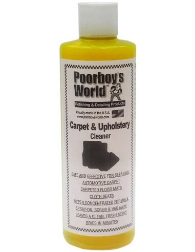 Poorboy’s World Carpet & Upholstery Cleaner to bezpieczny, nietoksyczny i wysoce skuteczny środek przeznaczony do usuwania zabrudzeń z różnego rodzaju tkanin. Doskonale sprawdza się w usuwaniu plam z dywaników samochodowych, wykładziny podłogowej, foteli oraz innych elementów z materiału. Jest na tyle mocny i skuteczny w usuwaniu trudnych plam, a jednocześnie wystarczająco delikatny, że można używać go tak często jak tylko zajdzie taka potrzeba.