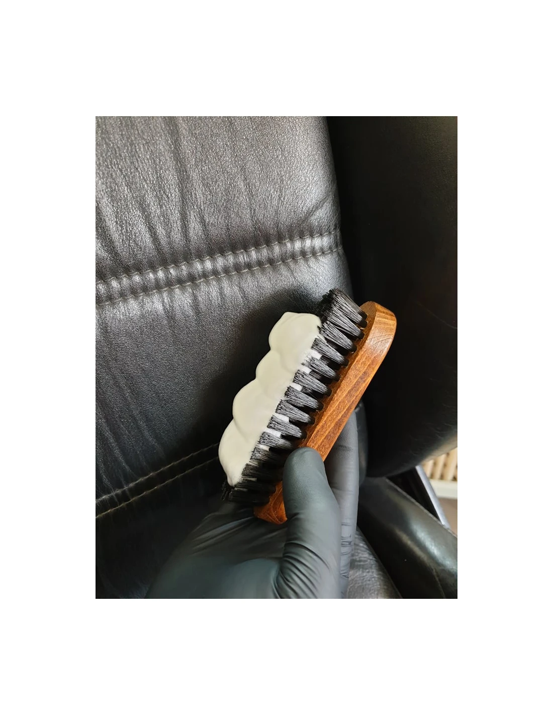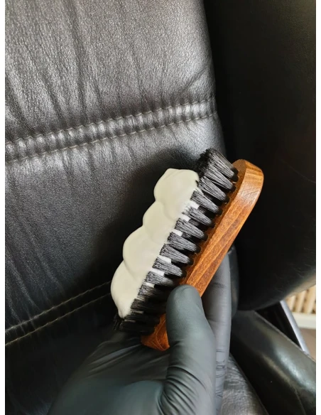 Użycie: Przed użyciem należy oczyścić skórę z wszelkich nieczystości środkiem Strong Cleaner. Świeże plamy należy szybko usunąć, za pomocą szmatki chłonącej wilgoć. Należy nałożyć na tapicerkę pianę Strong Cleaner. Następnie używając szczoteczki należy delikatnie czyścić zabrudzone miejsce wykonując okrężne ruchy. Pozostałości usunąć miękką szmatką. Gdy efekt nie jest zadowalający czynność należy powtórzyć. Tapicerka powinna pozostać do wyschnięcia. Zalecamy przeprowadzić w niewidocznym miejscu test, który pozwoli sprawdzić stabilność farby. Spowodowane jest to różnymi rodzajami skór oraz różnym ich impregnowaniem. Do pielęgnacji można przystąpić minimum po dwóch godzinach od użycia środka czyszczącego. Leder Versiegelung trzeba nanosić za pomocą miękkiej szmatki wykonując okrężne ruchy. Po użyciu należy poczekać, aż wyschnie.