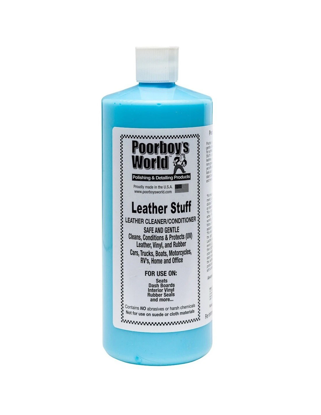 Poorboy’s Leather Stuff jest produktem opartym na bazie wody, zaprojektowanym specjalnie po to by nawilżać i odżywiać powierzchnię tapicerki skórzanej, odnawiając jej naturalne piękno. W jednym kroku łagodnie czyści lekkie zabrudzenia oraz pokrywa elementy powłoką absorbującą promienie UV. Nie pozostawia tłustego filmu. W efekcie pokryta produktem powierzchnia odzyskuje nowy, naturalny wygląd, zaś wnętrze samochodu wypełnia przyjemny aromat świeżej skóry. Poorboy’s Leather Stuff może być również użyty jako dressing do plastikowych, winylowych i gumowych elementów wnętrza samochodu.