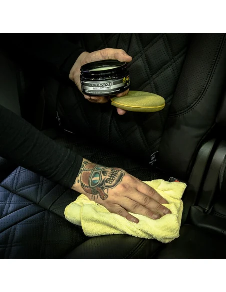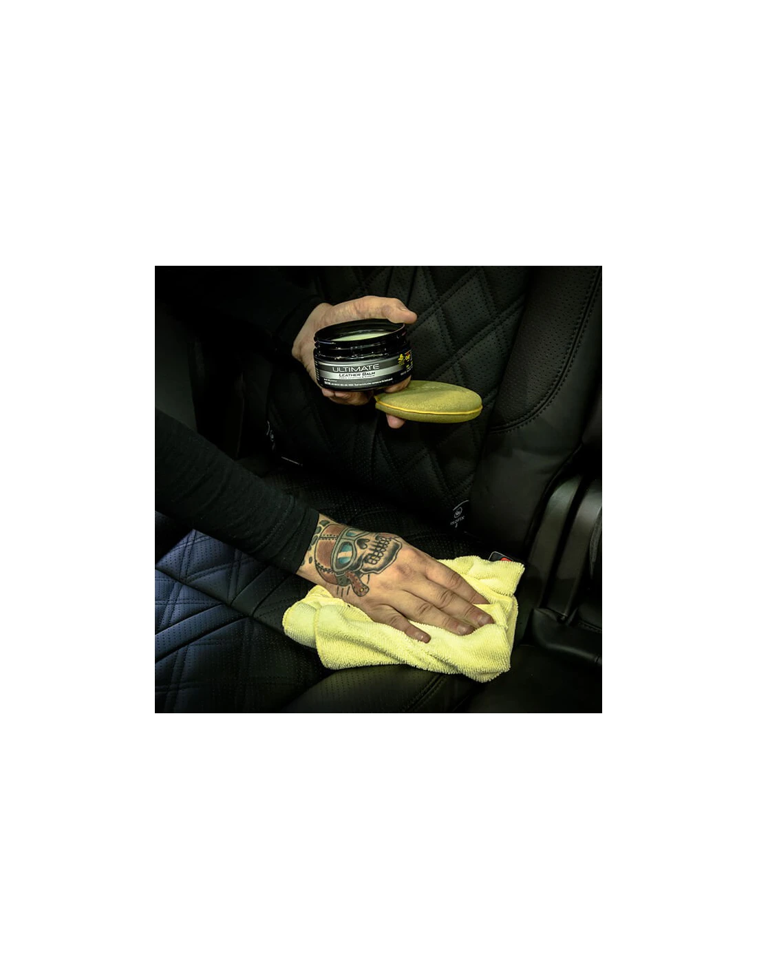 Wyjątkowa formuła produktu Ultimate Leather Balm czyści, odżywia i zabezpiecza skórzaną tapicerkę w jednym prostym kroku. Produkt został opracowany w oparciu o naturalne składniki takie jak masło kakaowe i olejek jojoba dla zapewnia skórze wyjątkowej pielęgnacji. Filtr zabezpieczający przed promieniowaniem UV chroni skórę, żeby zawsze wyglądała jak nowa. Odżywcza fomuła produktu Ultimate Leather Balm zapewnia skórze wyjątkową pielęgnację.