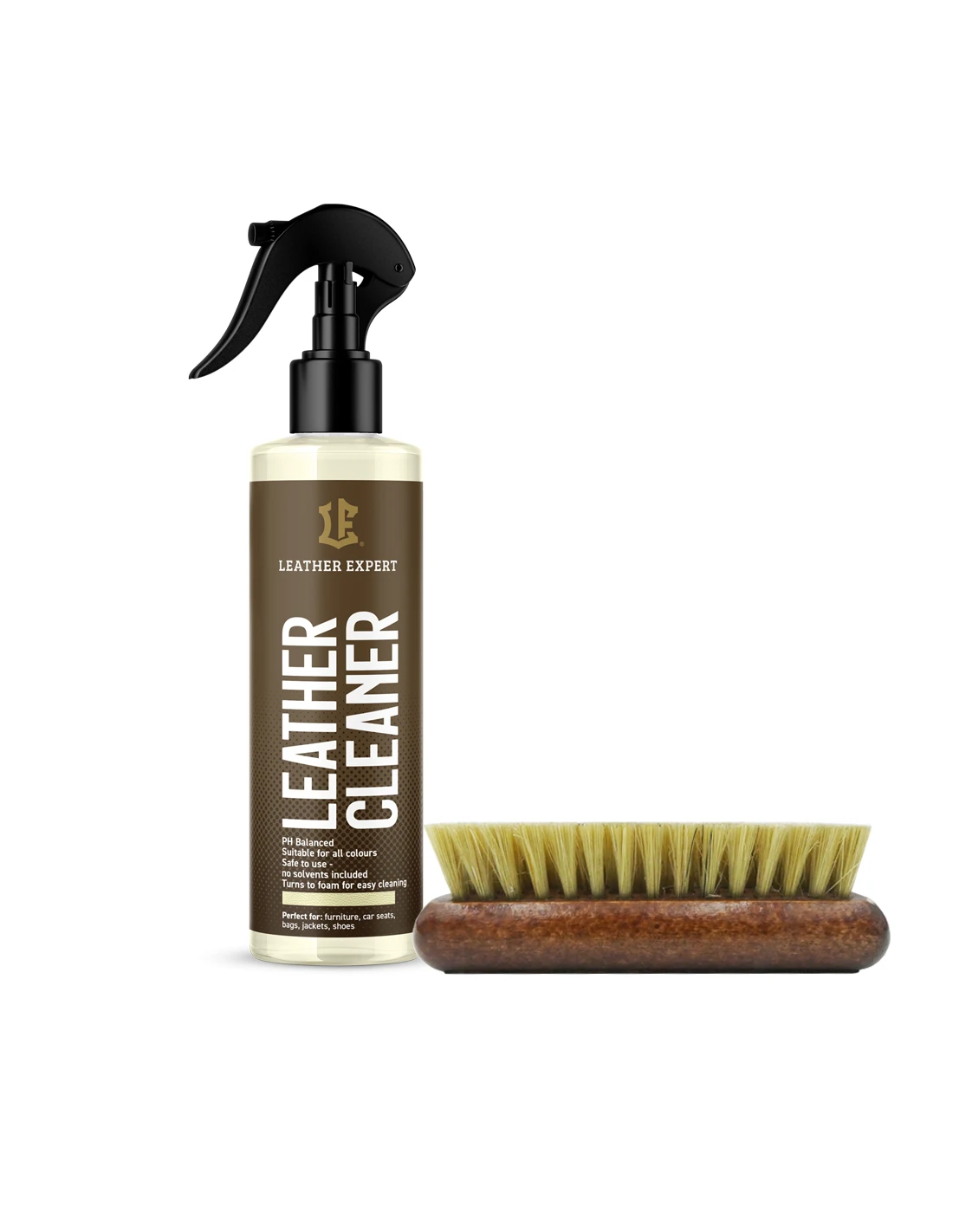 - Leather Cleaner - delikatny środek czyszczący do skór gładkich z atomizerem. Skutecznie usuwa wszelkiego rodzaju plamy i zabrudzenia z powierzchni skóry, niweluje nieprzyjemne zapachy (np. dym papierosowy, ludzki pot).