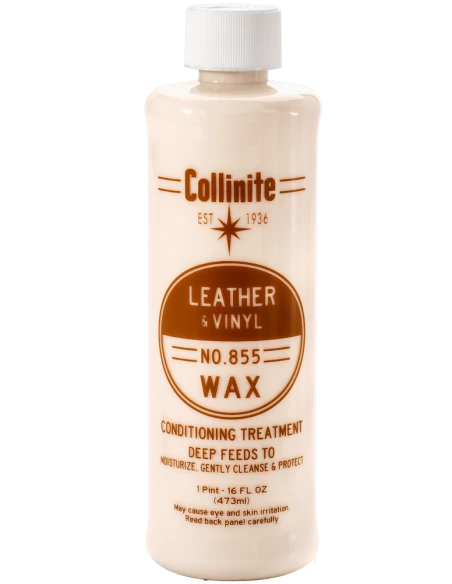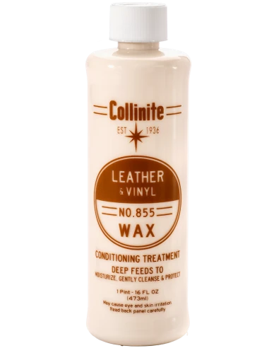Collinite 855 Leather and Vinyl Wax głęboko odżywia skórę oraz winyl, pozwalając zachować nowy wygląd powierzchni. Zapewnia ochronę zabezpieczając przed wysychaniem, pękaniem, przedwczesnym niszczeniem oraz plamieniem.