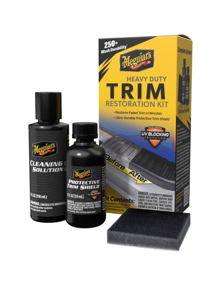 Nie pozwól, aby wyblakłe elementy z tworzywa sztucznego psuły wygląd Twojego samochodu! Heavy Duty Trim Restoration Kit skutecznie przywraca ich pierwotny wygląd i zapewnia długotrwałą ochronę, jakiej możesz oczekiwać od Meguiar’s.