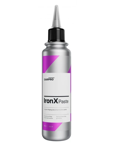 Najnowsza odsłona znanego wszystkim IronX. Żelowa konsystencja sprawia, że preparat jest jeszcze mocniejszy i doskonale usuwa wszelkiego rodzaju zabrudzenia i osady pochodzenia metalicznego. IronX Paste jest bezwzględny dla zabrudzeń, a całkowicie bezpieczny dla lakieru. Świetnie sprawdza się przy oczyszczaniu felg. Preparat po nałożeniu na zabrudzenie reaguje i rozpuszcza je zmieniając swój kolor na fioletowy.