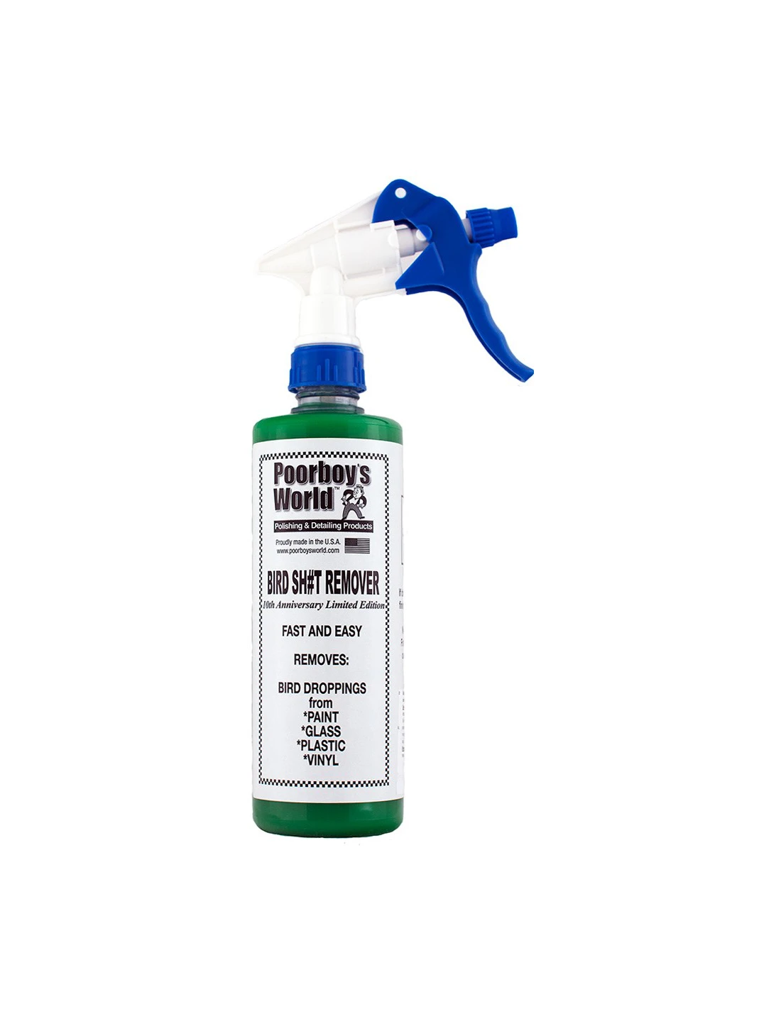 Poorboy's World to jeden z tych producentów którzy w swojej szerokiej linii kosmetyków samochodowych mają produkt do każdego zadania. Niecodzienna nazwa nowego produktu z limitowanej edycji Poorboy's Bird Sh!t Remover dokładnie opisuje to z czym ten środek radzi sobie doskonale. Zawarte w nim czynniki czyszczące pozwalają na bezpieczne odseparowanie i usunięcie ptasich odchodów z lakieru, szkła, plastiku, winylu oraz innych powierzchni. Produkt jest bardzo łatwy i efektywny w użyciu. Detail Spray Bird Sh!t Remover oprócz ptasich odchodów zmywa także inne zanieczyszczenia pochodzenia organicznego takie jak owady i żywice.