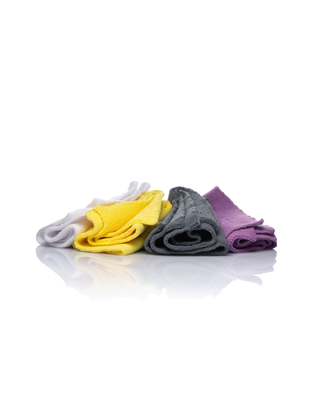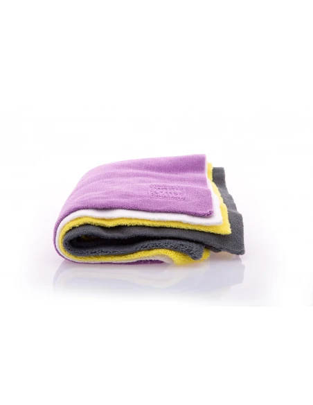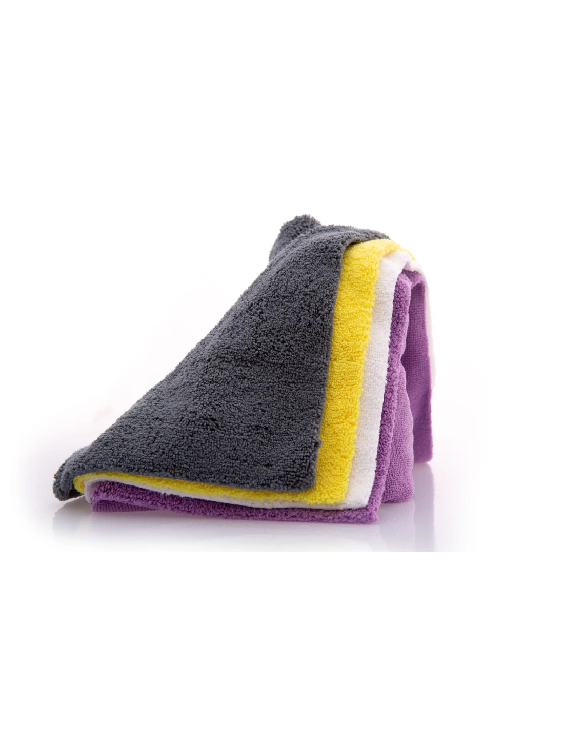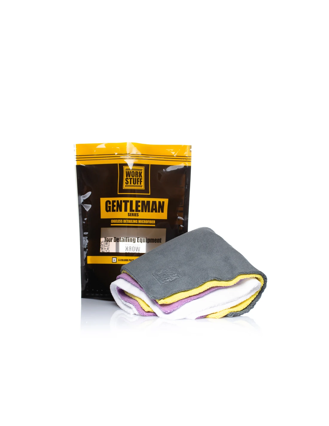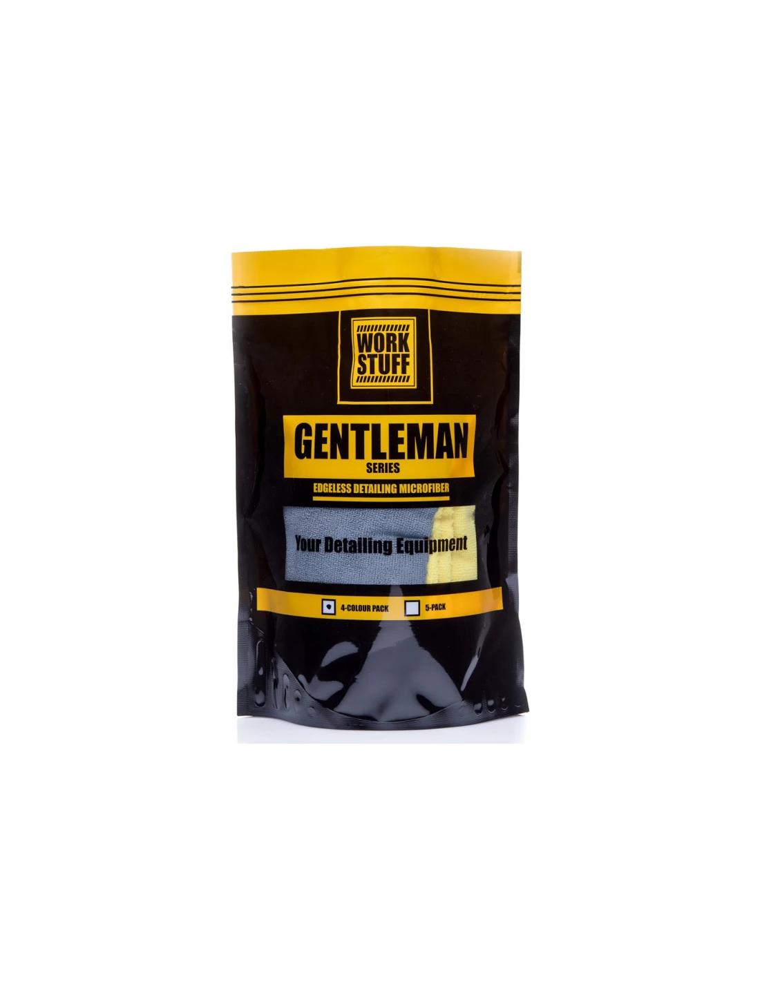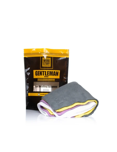 Mikrofibra do czyszczenia i pielęgnacji różnych elementów w samochodzie. Świetnie sprawdzi się podczas woskowania, nakładania powłok, stosowania Quick Detailer'ów oraz innych prac wewnątrz i z zewnątrz auta. Fibra posiada laserowo wycięty logotyp WORK STUFF. GENTLEMAN Basic posiada płaski materiał z jednej strony oraz puszysty z drugiej. Dzięki temu z pomocą jednej mikrofibry można nakładać produkt, a następnie go docierać na wybranym elemencie. Występuje w czterech wariantach kolorystycznych: fioletowy, biały, żółty, szary. Zestaw zawiera 4 sztuki mikrofibr, po jednej z każdego koloru.