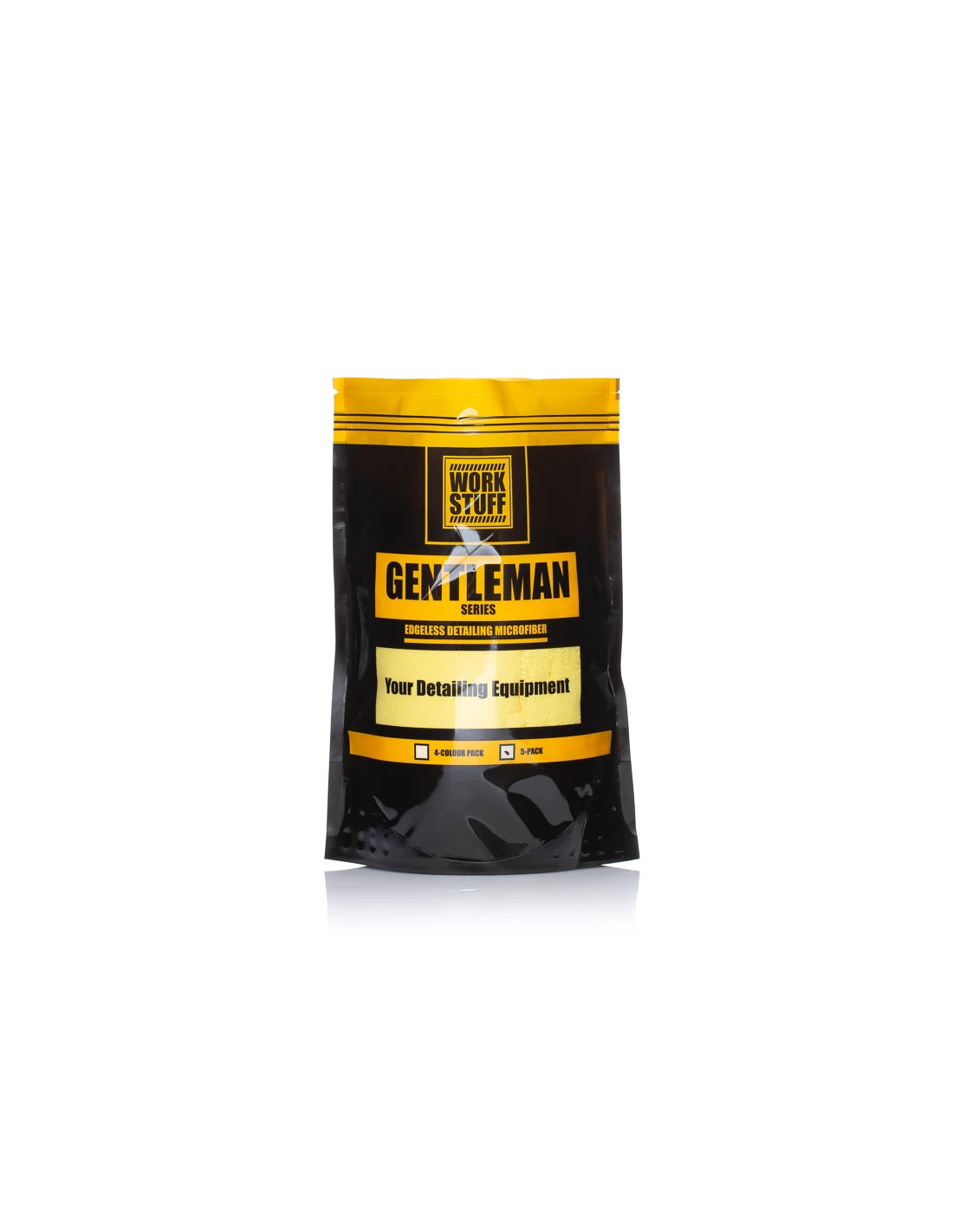 Mikrofibra do czyszczenia i pielęgnacji różnych elementów w samochodzie. Świetnie sprawdzi się podczas woskowania, nakładania powłok, stosowania Quick Detailer'ów oraz innych prac wewnątrz i z zewnątrz auta. Fibra posiada laserowo wycięty logotyp WORK STUFF. GENTLEMAN Basic posiada płaski materiał z jednej strony oraz puszysty z drugiej. Dzięki temu z pomocą jednej mikrofibry można nakładać produkt, a następnie go docierać na wybranym elemencie. Występuje w czterech wariantach kolorystycznych: fioletowy, biały, żółty, szary. W opakowaniu znajduje się 5 sztuk mikrofibr.