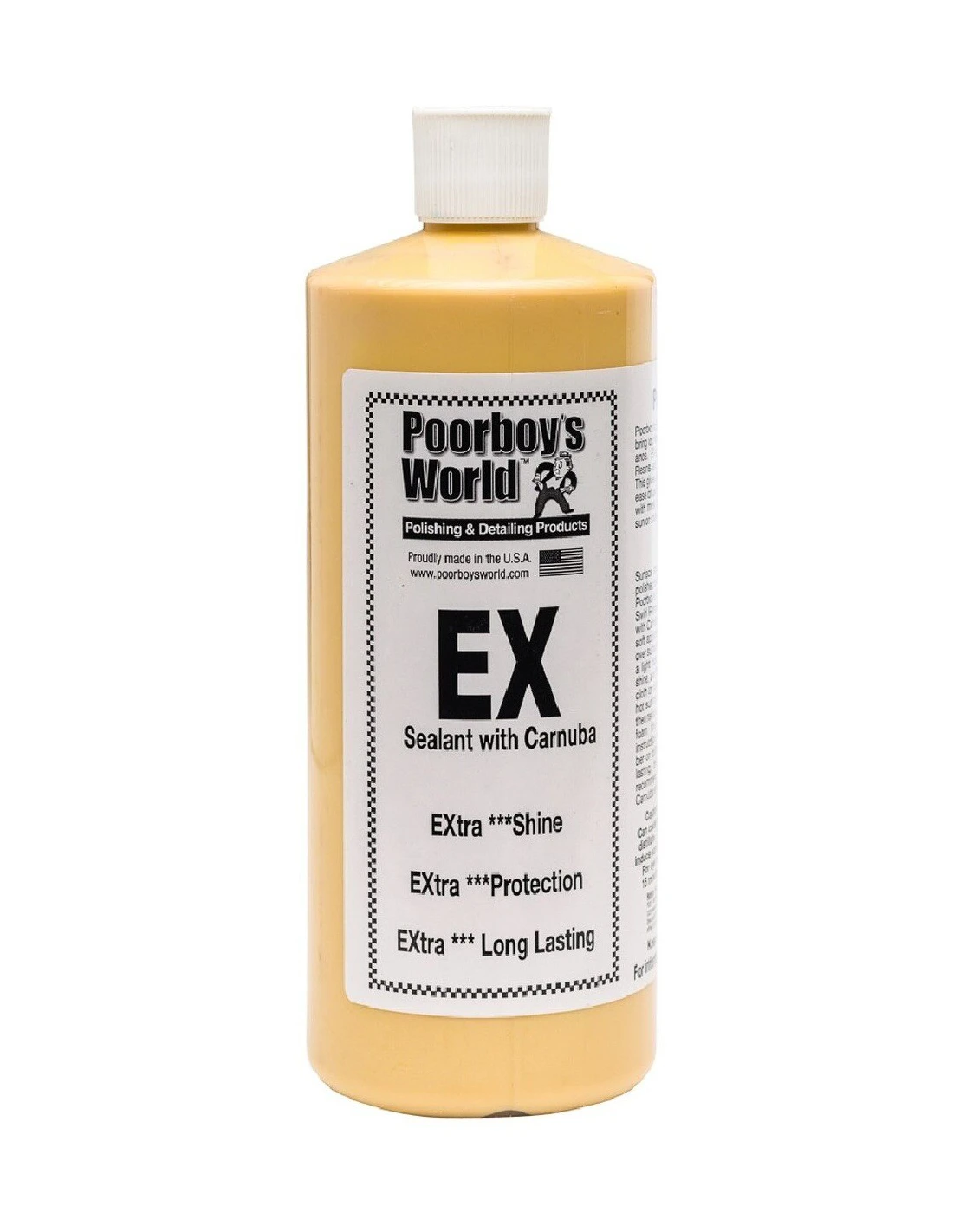 POORBOY’s EX Sealant with Carnauba to jeden z najlepszych wosków syntetycznych dostępnych na rynku profesjonalnych kosmetyków samochodowych. Bajecznie prosty w użyciu, pozwala nawet na aplikację w pełnym słońcu podczas gdy większość konkurencyjnych produktów wymaga cienia. Zapewnia doskonałe wizualnie wykończenie lakieru oraz 2-3 miesięczną ochronę po każdorazowym zastosowaniu. Tak jak inne zaawansowane technologicznie woski syntetyczne zwane hybrydami, EX zawiera naturalny wosk brazylijski Carnauba, dzięki któremu lakier zyskuje głębię koloru oraz niebywałą śliskość.