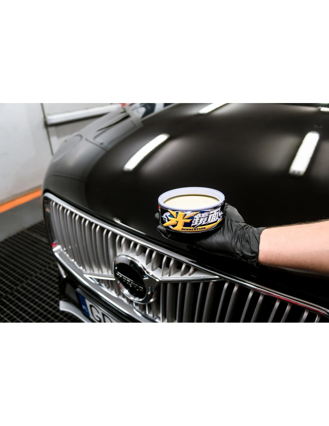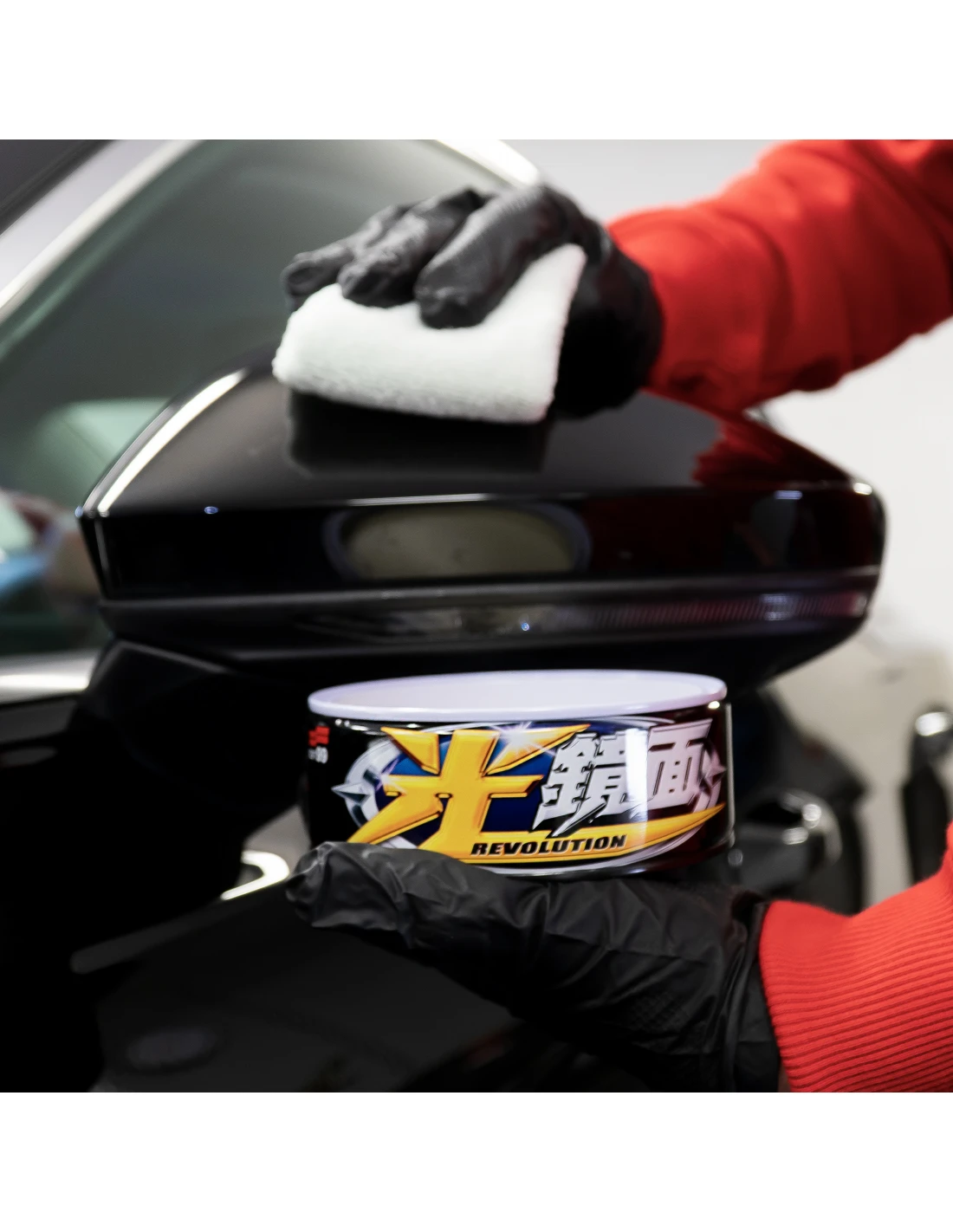 - Zaaplikuj wosk na dołączoną mikrofibrę poprzez lekkie wcieranie jej w wosk po otwarciu puszki.