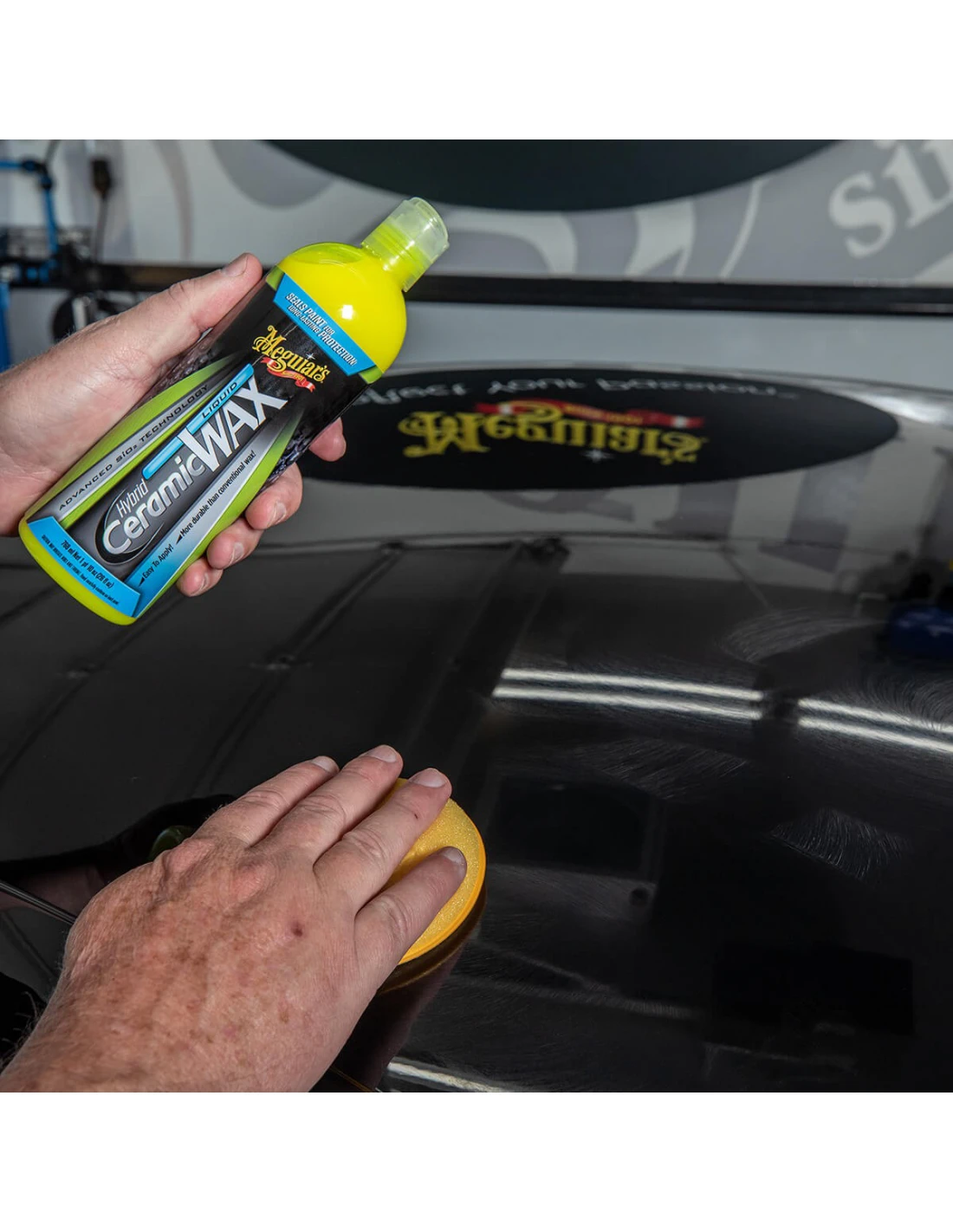 Wskazówka: Użyj Meguiar’s Hybrid Ceramic Detailer, aby usunąć lekkie zabrudzenia i utrzymać efekt perlenia wody pomiędzy aplikacjami wosku.