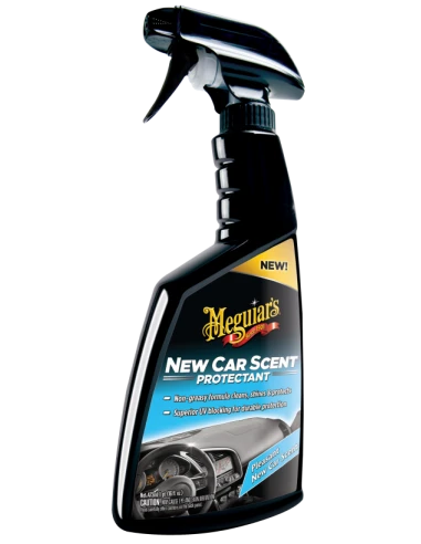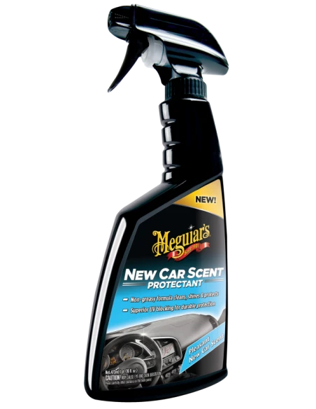 Meguiar’s New Car Scent Protentant to uniwersalna formuła, która oczyszcza, nadaje delikatny połysk i chroni wewnętrzne plastiki auta, pozostawiając odświeżający zapach „nowego samochodu”, który nawet eliminuje niepożądane zapachy z wewnętrznych powierzchni. New Car Scent Protectant pomoże usunąć codzienne zabrudzenia i kurz, zapewniając jednocześnie bogaty ciemny i satynowy połysk na powierzchniach winylowych, gumie i tworzywach sztucznych. Środki blokujące promieniowanie UV pomagają również chronić powierzchnie wewnętrzne i ich jak nowy wygląd. Ta formuła premium wyeliminuje niechciane odory i pozostawi przyjemny zapach „nowego samochodu”. Sprawi, że wnętrze Twojego pojazdu będzie pachnieć tak dobrze, jak wygląda.