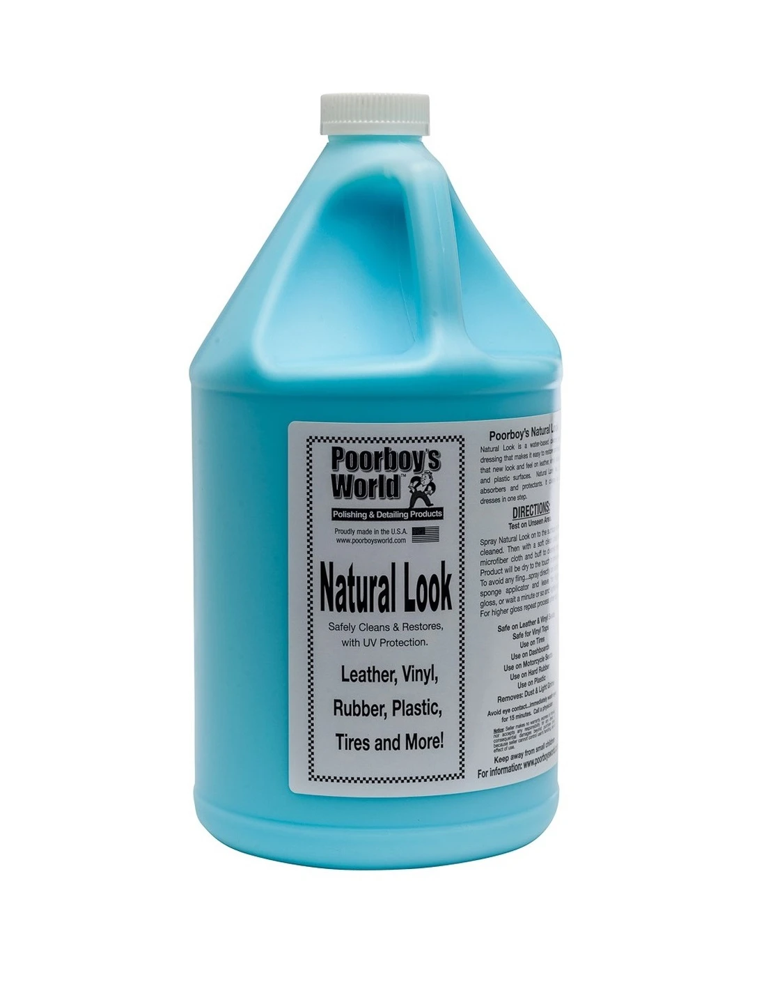 Zaniedbane powierzchnie wewnątrz samochodu z upływem czasu wysychają i niszczeją. Powodować to mogą różne czynniki, m.in. użyte detergenty lub promienie UV. Poorboy’s Natural Look to produkt oparty na bazie wody, delikatnie czyszczący i jednocześnie działający jak dressing dla powierzchni plastikowych, winylowych, gumowych. W jednym kroku łagodnie czyści lekkie zabrudzenia oraz pokrywa elementy powłoką absorbującą promienie UV. Nie pozostawia tłustego filmu. W efekcie pokryta produktem powierzchnia odzyskuje nowy, naturalny wygląd. Zabezpieczone w ten sposób tworzywo będzie dłużej cieszyć oko nienagannym wizerunkiem. Produkt pozostawia przyjemny, migdałowy aromat.