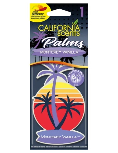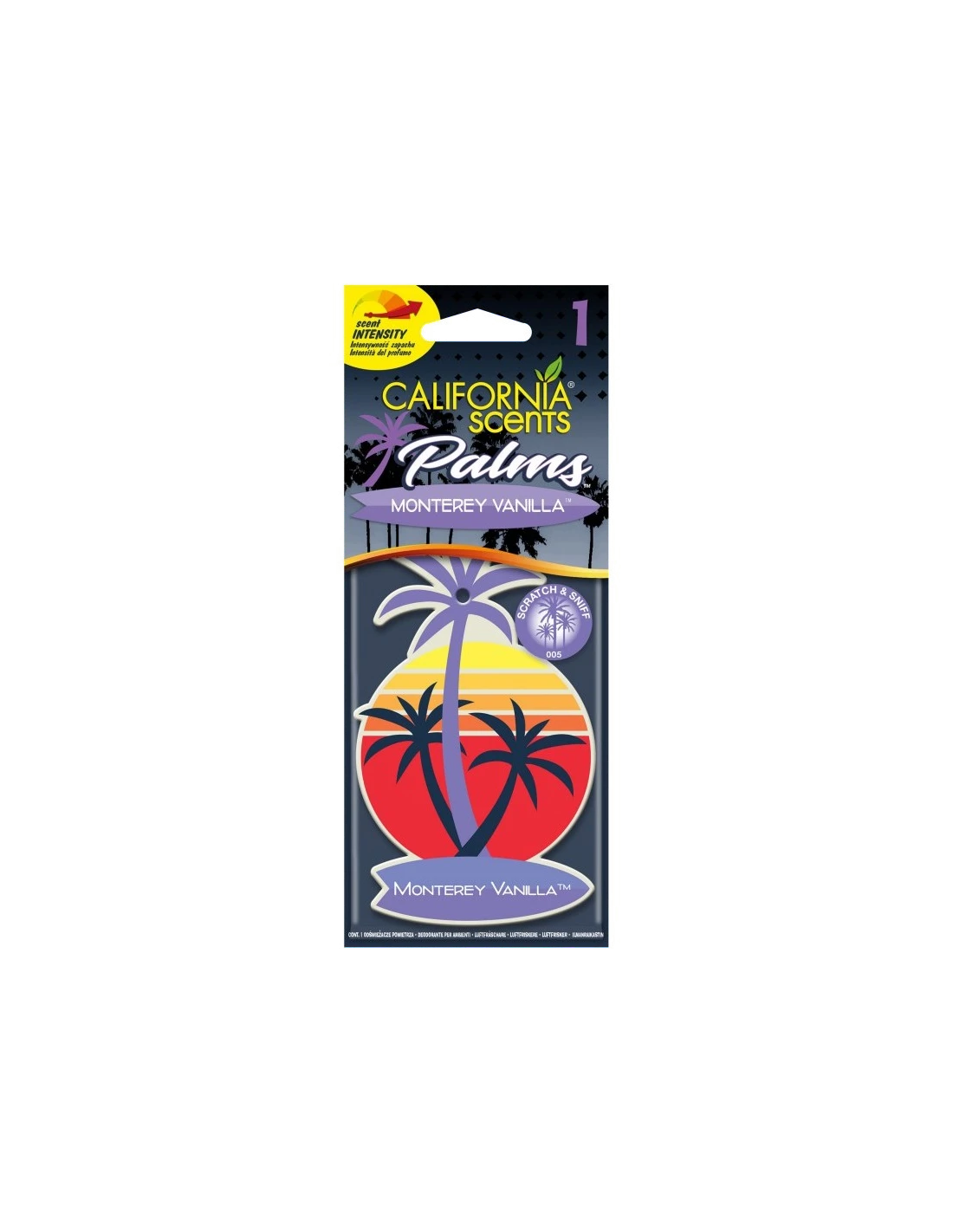 California Scents Palm Paper zapewnia mocny, intensywny zapach wszędzie tam, gdzie tego potrzebujesz. Świetnie sprawdza się również w domu, w biurze lub w kamperze. Niedroga i łatwa w użyciu zawieszka zapachowa California Scents jest doskonałym rozwiązaniem dla dostarczania ciekawych i odświeżających pomieszczenie zapachów.