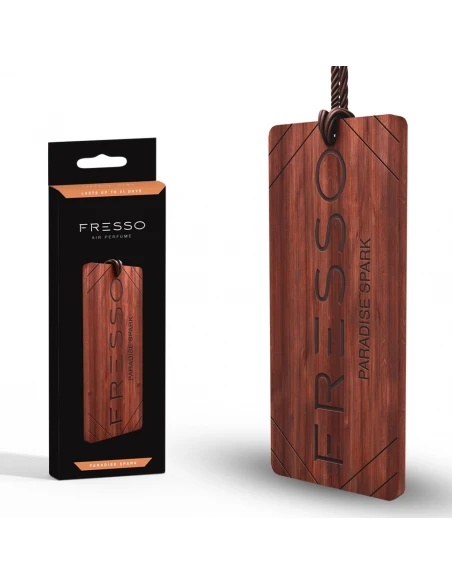 Elegancka, drewniana zawieszka zapachowa wzbogacona w brązowy, pleciony sznurek to wyszukany dodatek, który będzie znakomicie pasował do każdego wnętrza samochodu. Zawieszka Fresso pozytywnie Cię zaskoczy, gdyż ma unikalną formę, a jej zapach jest trwały i genialnie skomponowany. Ze względu na naturalne pochodzenie zawieszki nieznacznie różnią się od siebie wyglądem tworząc przy tym unikalność i wyjątkowość produktu.