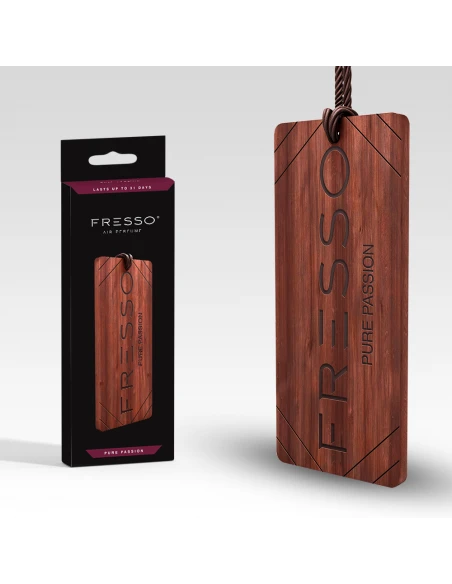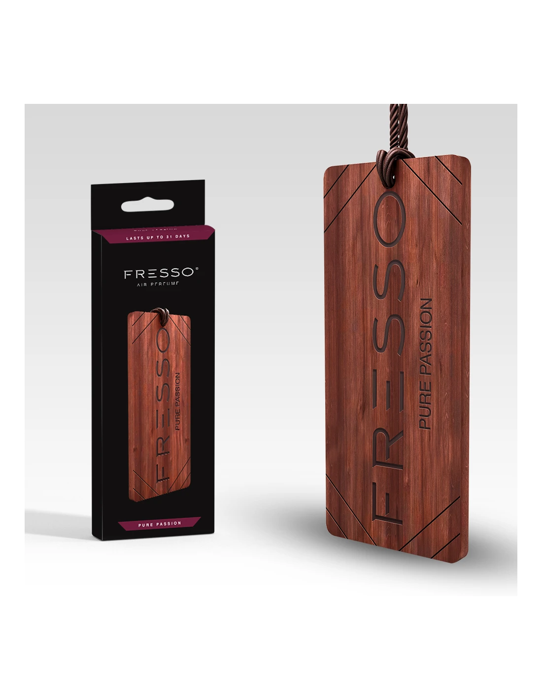 Elegancka, drewniana zawieszka zapachowa wzbogacona w brązowy, pleciony sznurek to wyszukany dodatek, który będzie znakomicie pasował do każdego wnętrza samochodu. Zawieszka Fresso pozytywnie Cię zaskoczy, gdyż ma unikalną formę, a jej zapach jest trwały i genialnie skomponowany. Ze względu na naturalne pochodzenie zawieszki nieznacznie różnią się od siebie wyglądem tworząc przy tym unikalność i wyjątkowość produktu.