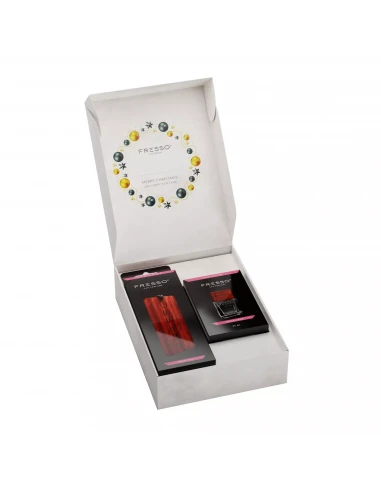 Pudełko zapachowe Gift Box to idealny pomysł na zapachowy upominek. Eleganckie, świąteczne pudełko zawiera zawieszkę oraz perfumy 50ml z tego samego zapachu.