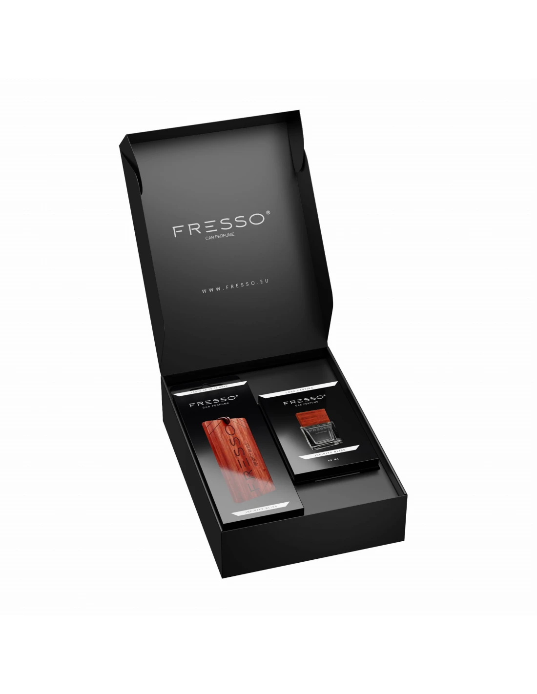 Niezwykła kompozycja zapachowa, zamknięta w szklanym flakonie perfum Fresso zachwycą swą wyrazistą głębią. Nasadka wykonana z drewna podkreśla ich wyjątkowość i elegancję. Perfumy Fresso dawkuj tak jak lubisz, intensywność zapachu zależy tylko od Ciebie. W każdym momencie możesz odświeżyć i wzmocnić delikatną woń, która na nowo wypełni Twoje auto.
