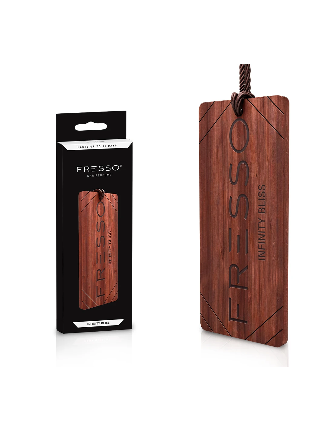 Elegancka, drewniana zawieszka zapachowa wzbogacona w brązowy, pleciony sznurek to wyszukany dodatek, który będzie znakomicie pasował do każdego wnętrza samochodu. Zawieszka Fresso pozytywnie Cię zaskoczy, gdyż ma unikalną formę, a jej zapach jest trwały i genialnie skomponowany. Ze względu na naturalne pochodzenie zawieszki nieznacznie różnią się od siebie wyglądem tworząc przy tym unikalność i wyjątkowość produktu.