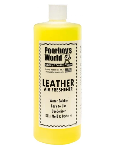 Poorboy’s World Air Freshener Leather – odświeżacz powietrza. Płyn ten, oparty na bazie wody, eliminuje i neutralizuje nieprzyjemne zapachy pozostawiając we wnętrzu Twojego samochodu przyjemny aromat nowej skóry.